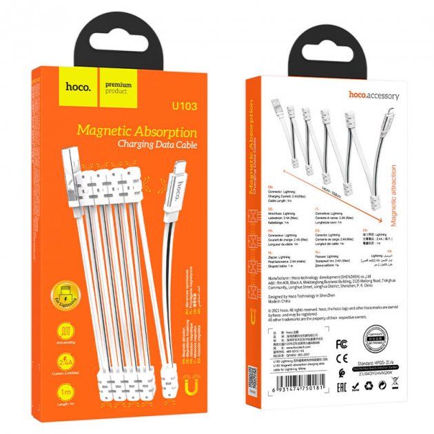 Кабель Hoco U103 USB to Lightning 1m, білий