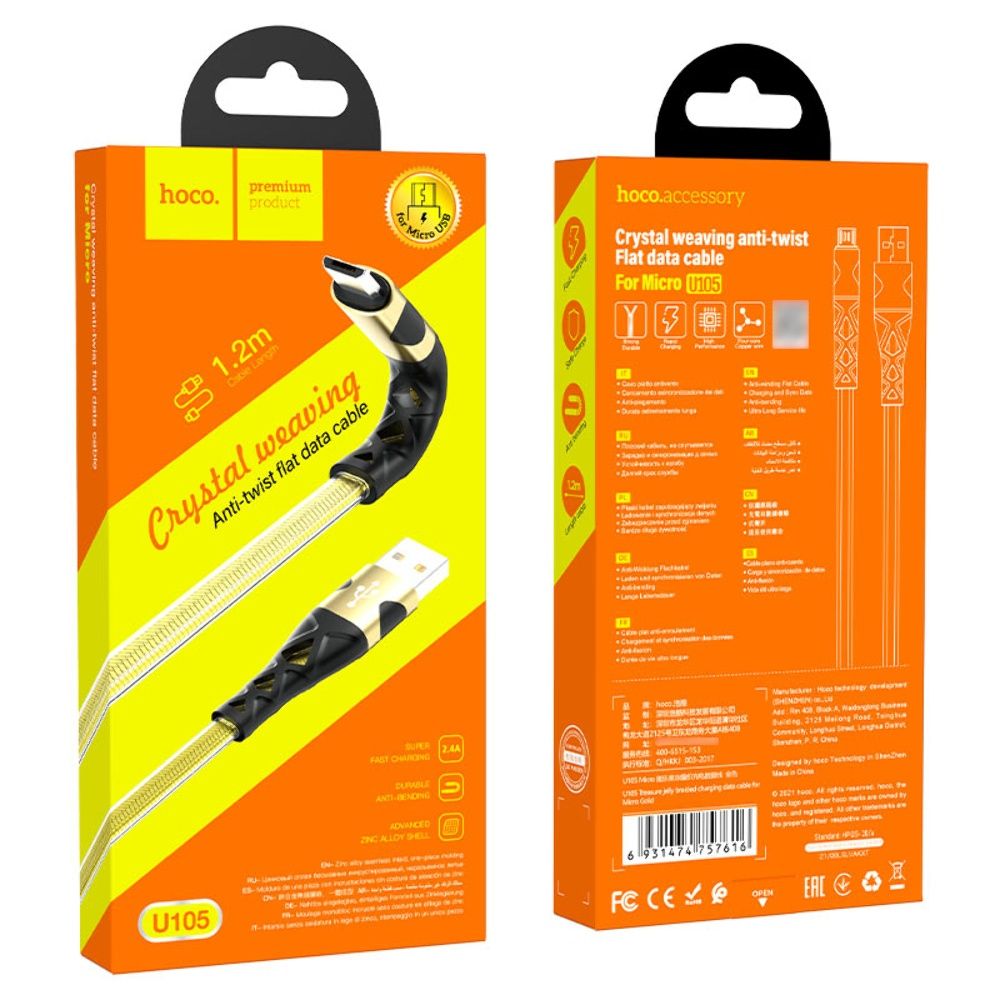Золотистий кабель Hoco U105 USB to MicroUSB 1.2m