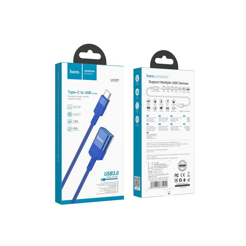 Кабель Hoco U107 подовжувач Type-C to USB 3.0 (F) 1.2m синій