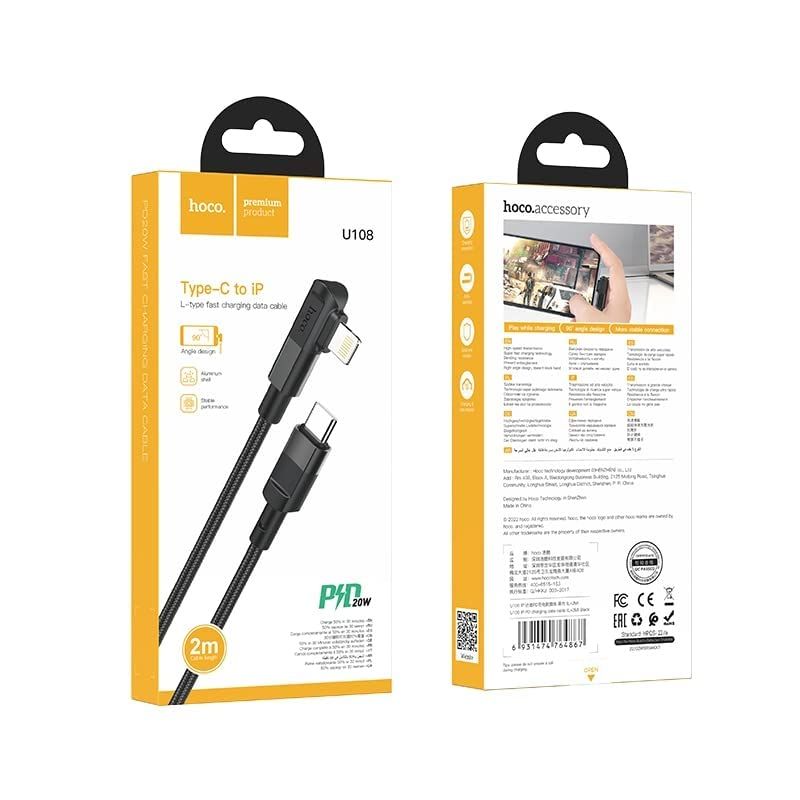 Кабель Hoco U108 PD Type-C to Lightning 2m чорний