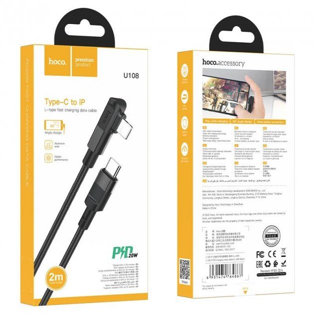 Кабель Hoco U108 Type-C to Type-C PD 100W 2m чорний