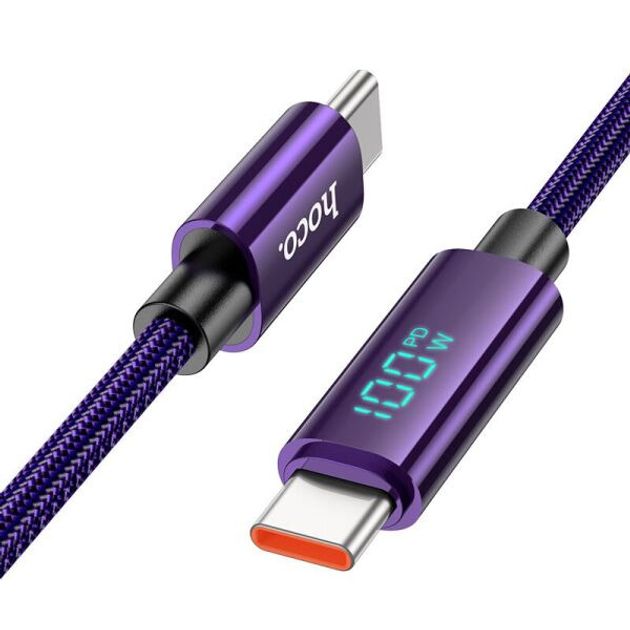 Кабель HOCO U125 Benefit 100W передача даних cable with display Type-C to Type-C 1.2m Purple