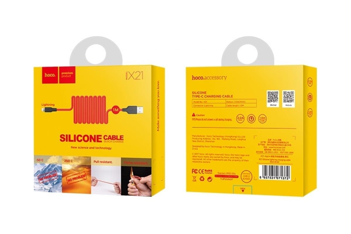 USB кабель Hoco X21 Silicone Lightning Чёрно-Красный