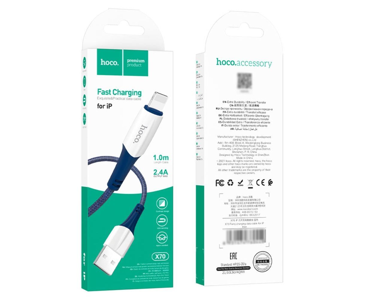 Кабель Hoco X70 USB to Lightning 1m синій