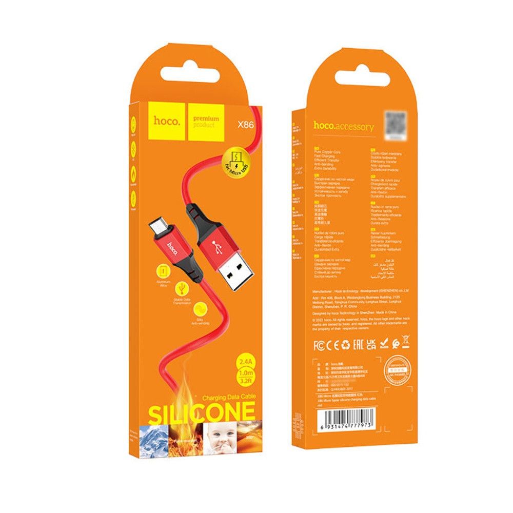 Кабель Hoco X86 USB to MicroUSB 1m червоний
