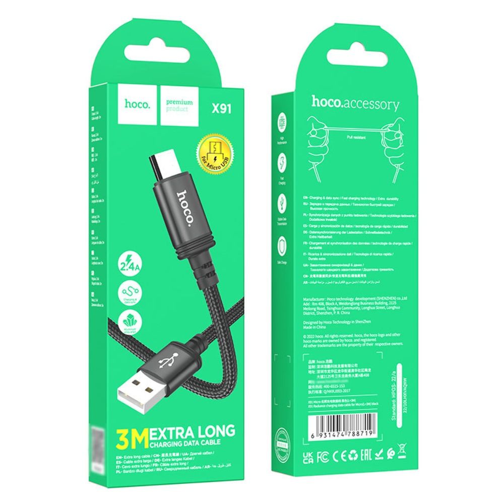 Кабель Hoco X91 3m чорний USB to MicroUSB
