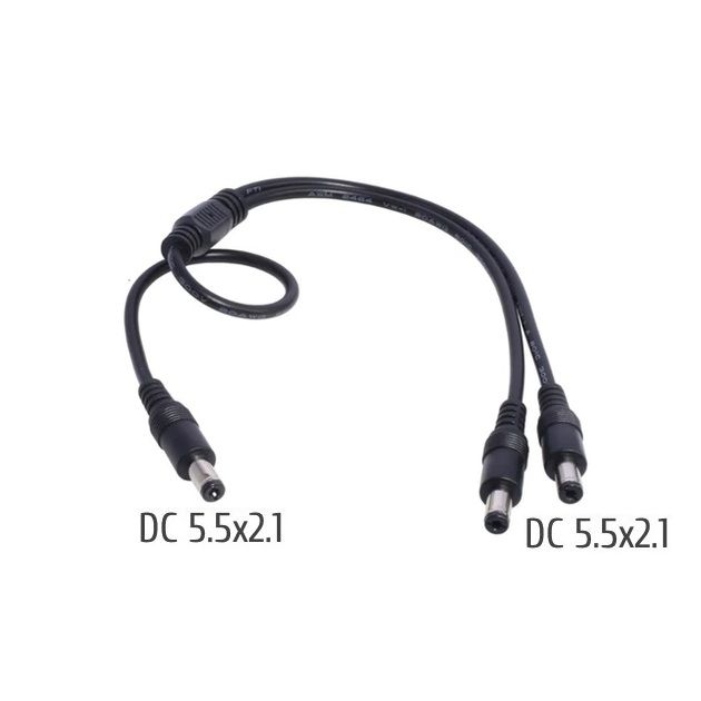 Цей кабель роздвоювач призначений для підключення двох пристроїв до одного джерела живлення з роз'ємом DC 5.5x2.1 мм. Розгалужувач дозволяє зручно розподіляти живлення між двома пристроями, такими як роутери, відеоспостереження, LED стрічки, модеми та інша техніка з аналогічними роз'ємами.