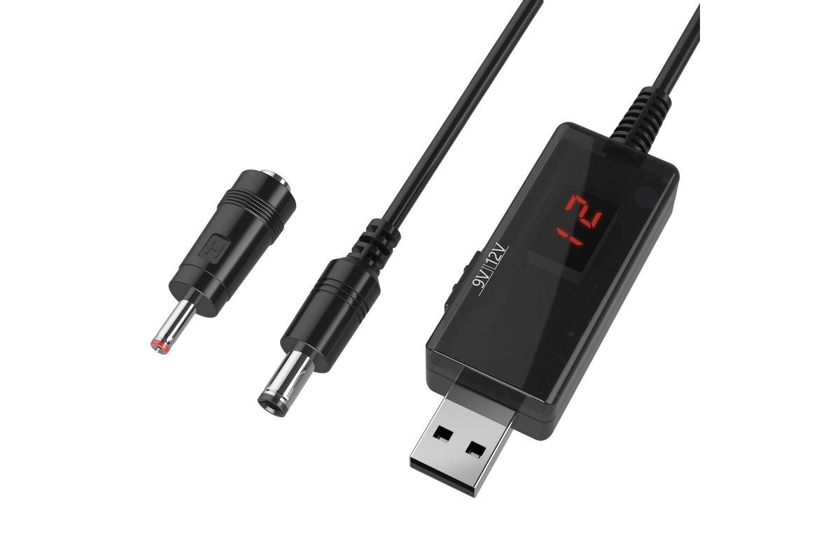 Кабель для підключення Wi-Fi роутера та інших пристроїв від порту USB (повербанк та ін. джерела живлення). Підходить для більшості роутерів та інших пристроїв, що потребують 9В/12В постійного струму силою до 1А.