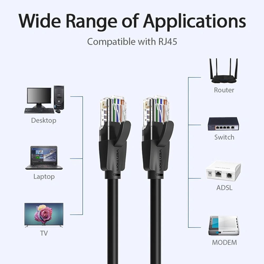 - Кабель підходить для підключення до будь-якого обладнання з інтерфейсом RJ45, включаючи комп'ютери, маршрутизатори, модеми та інші мережеві пристрої.