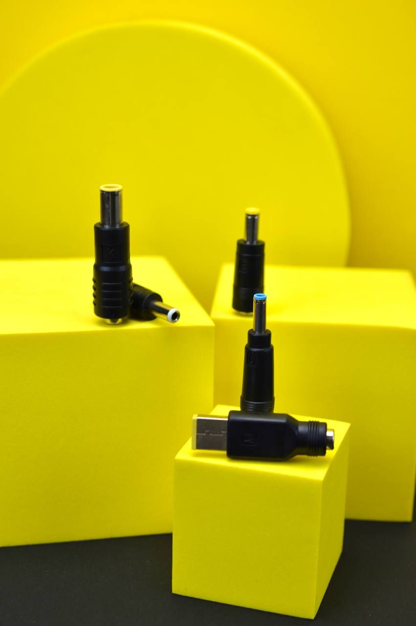 У комплекті 10 перехідників різних діаметрів, які підходять для найпопулярніших моделей ноутбуків, включаючи Lenovo, HP, Sony, Acer, Asus та інші. Просто підключіть необхідний адаптер до кабелю та почніть заряджання.