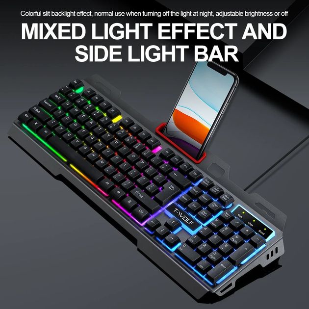 Дротова мембранна ігрова клавіатура T-Wolf T16 з RGB підсвічуванням