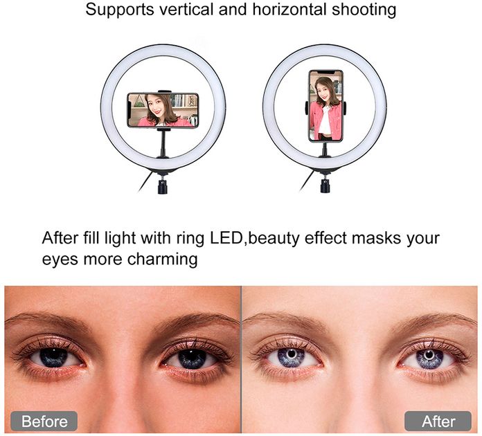 Світлодіодне кільце: 26×26×15 см (26×30.7 см із кріпленням)