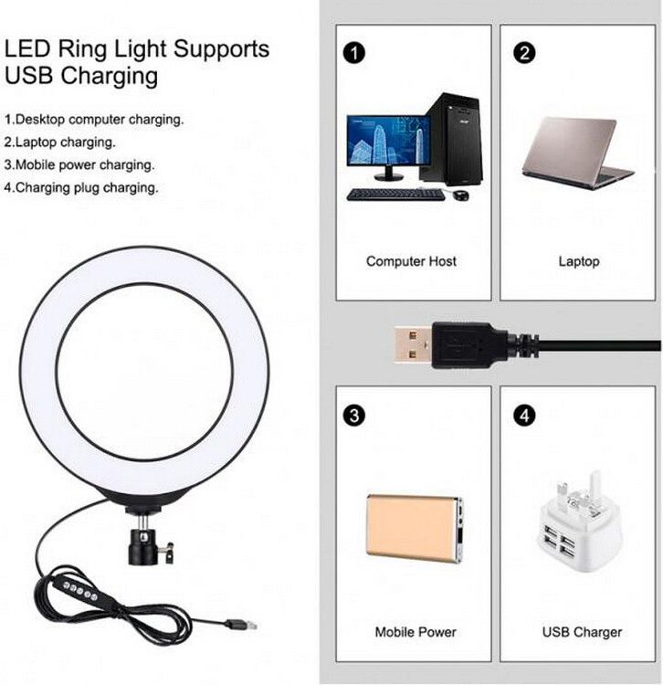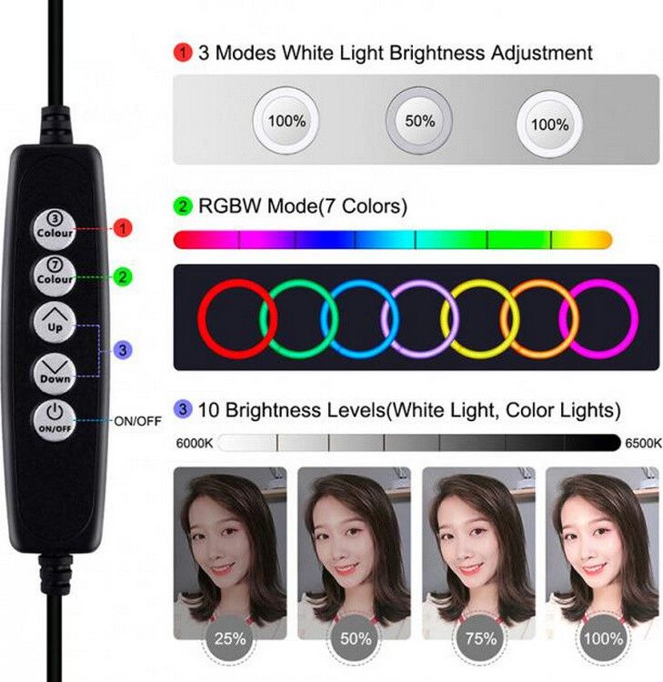 Кільцева USB RGBW LED лампа Puluz PKT3047B 6.2" + настільне кріплення