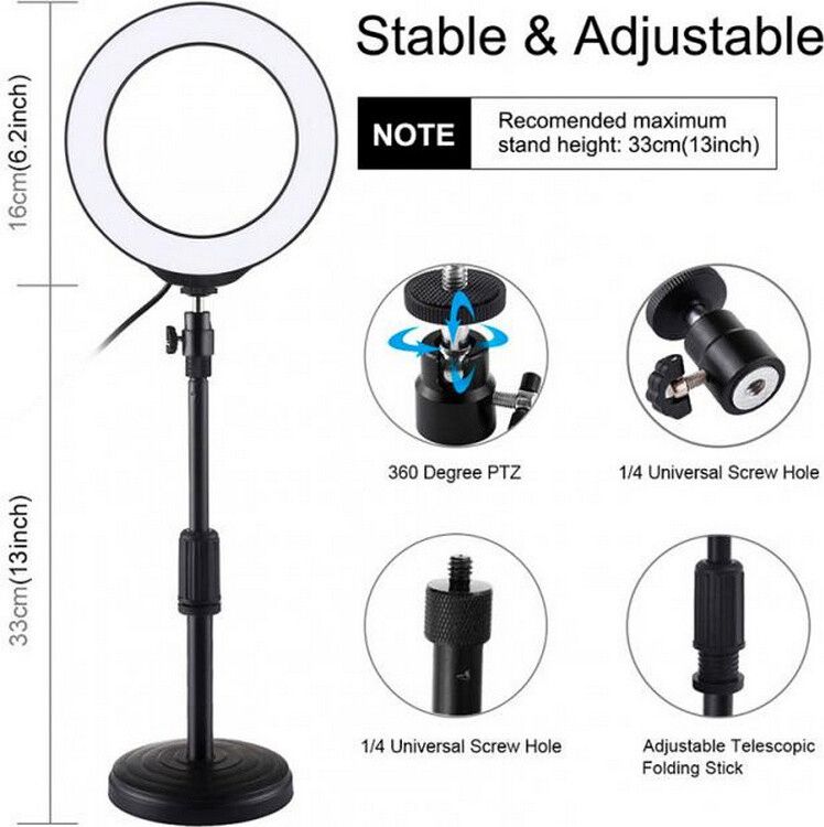 Компактна та потужна кільцева RGBW LED лампа Puluz PKT3047B 6.2" з настільним кріпленням – це універсальне рішення для відеозйомки, макіяжу, прямих трансляцій, фотографій та створення контенту. Лампа підтримує кольорове RGB-освітлення та яскраве біле світло, що дозволяє легко біле світло.