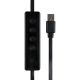 Кабель колонок забезпечений пультом, який дозволяє легко регулювати гучність, вибирати режим з'єднання та налаштовувати режим підсвічування. Вхідна сила струму становить 1-2A при напрузі 5V, що робить колонки максимально простими у використанні.
