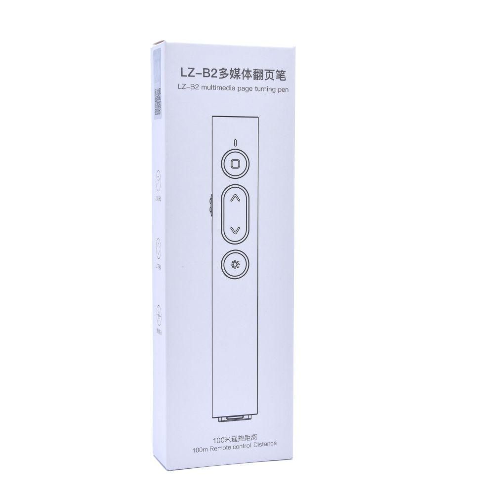 Лазерна указка-презентер Remax LZ-B2 - це бездротовий, функціональний пристрій, який спростить показ презентацій. Аксесуар має компактні розміри і невелику вагу, оснащений великими кнопками, що дозволяє легко і просто керувати презентацією або відтворенням мультимедіа файлів, навіть не дивлячись на нього. Корпус презентера виконаний у прямокутній формі, має заокруглені бічні грані та матову поверхню, завдяки чому його приємно та зручно тримати у руці. На одній з бічних граней пристрою знаходиться кнопка перемикання режимів та роз'єм micro-USB для зарядки, на лицьовій панелі розташовані функціональні кнопки для включення лазера, переходу між слайдами та перемикання треків або відео роликів, регулювання гучності, переходу між вікнами, запуску та закінчення презентації. Лінза лазера, здатного працювати з відривом до 100 метрів, перебуває у верхньому торці, а в нижньому - магнітний слот для зберігання USB адаптера бездротового зв'язку. Акумулятор ємністю 200 mAh дозволяє використати презентер протягом 90 днів.