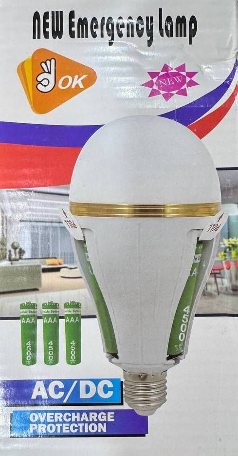 Вона має в комплекті змінний акумулятор 18650 (3шт), який заряджається від мережі під час увімкнення в розетку E27 і підтримує світло впродовж 3-4 годин у разі вимкнення електроенергії.