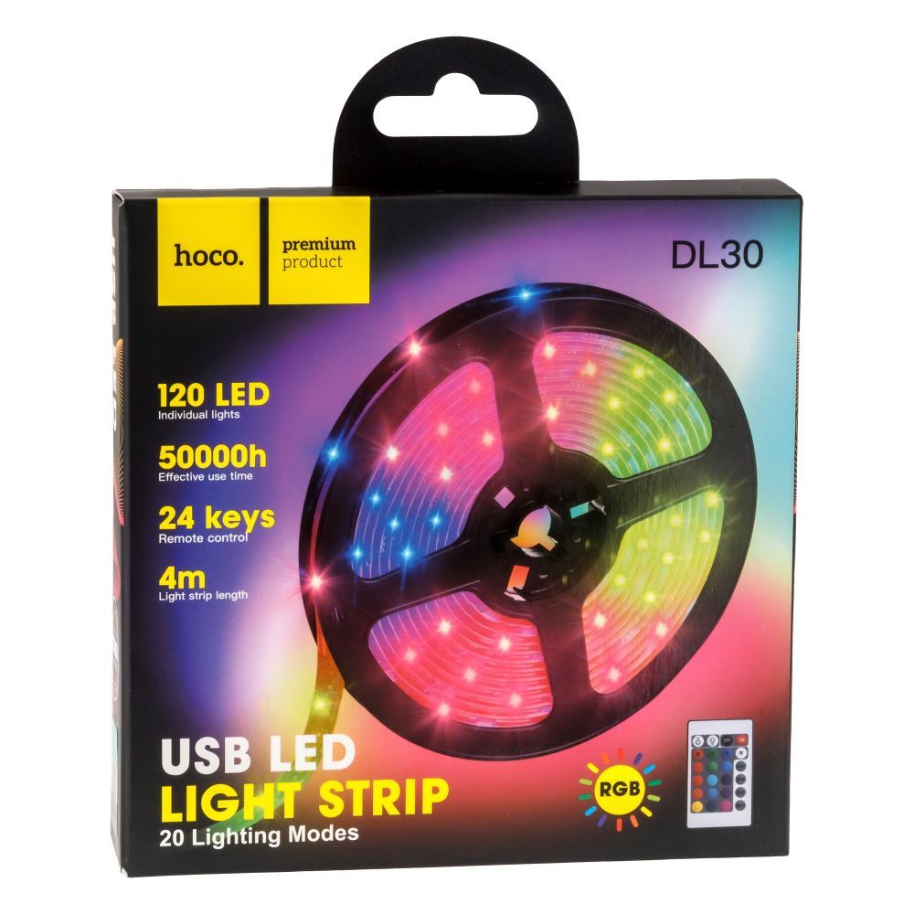Hoco DL30 Plus – це яскрава та універсальна світлодіодна стрічка довжиною 4 метри, яка створить унікальну атмосферу у будь-якому приміщенні чи автомобілі. Вона легко монтується, має 20 режимів світіння та керується за допомогою пульта ДУ.