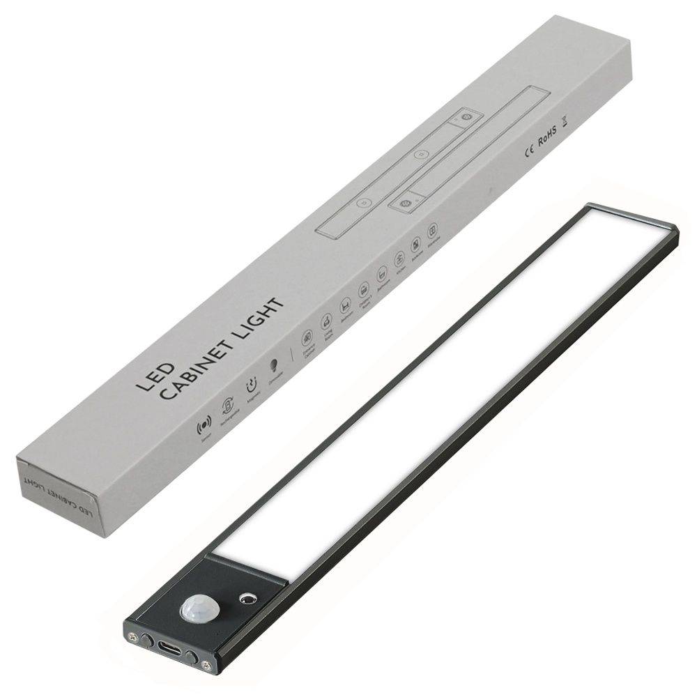 LED світильник 30-2B з датчиком руху та освітленості, акумулятором, пультом ДК, в алюмінієвому корпусі, 30 см, 2.5W Black