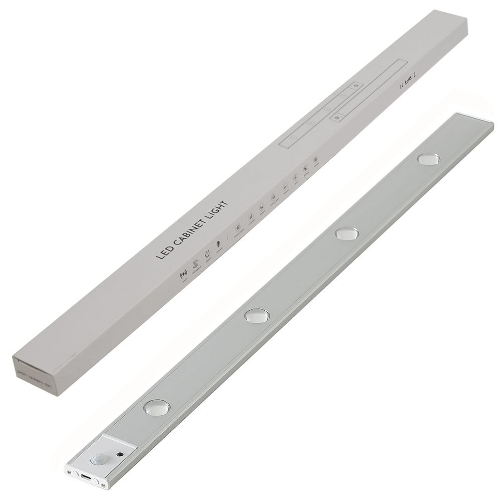 LED світильник 60-2S /око кота/ з датчиком руху, акумулятором, пультом ДК, алюмінієвий корпус, 60 см, 2W Silver