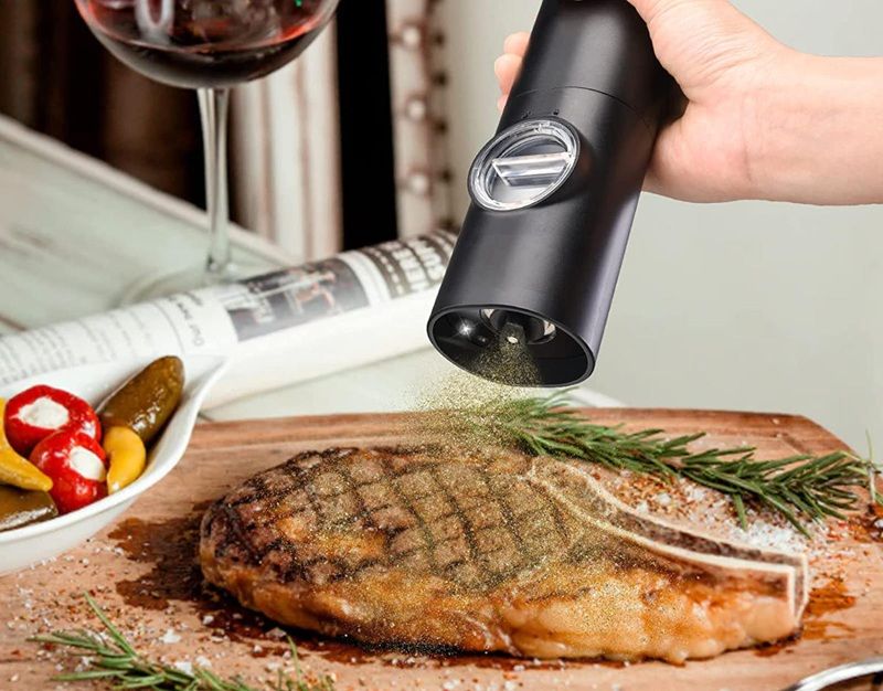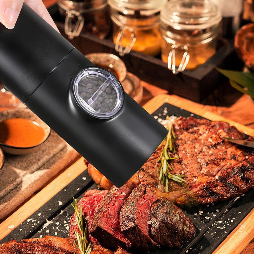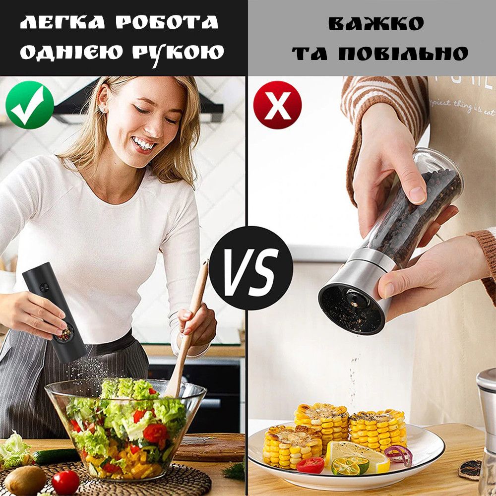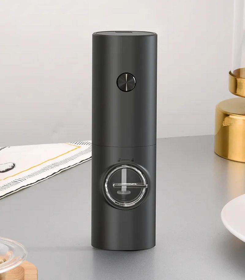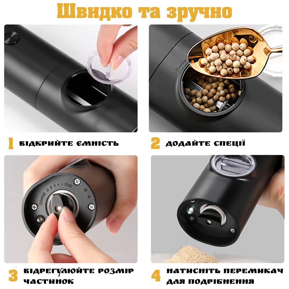 Млинок для перцю і спецій KYMQ-14 електричний, з налаштовуваним помелом, портативний, на батарейках 4xAAA (міні-пальчик), 70ml, 55x50x180mm, black