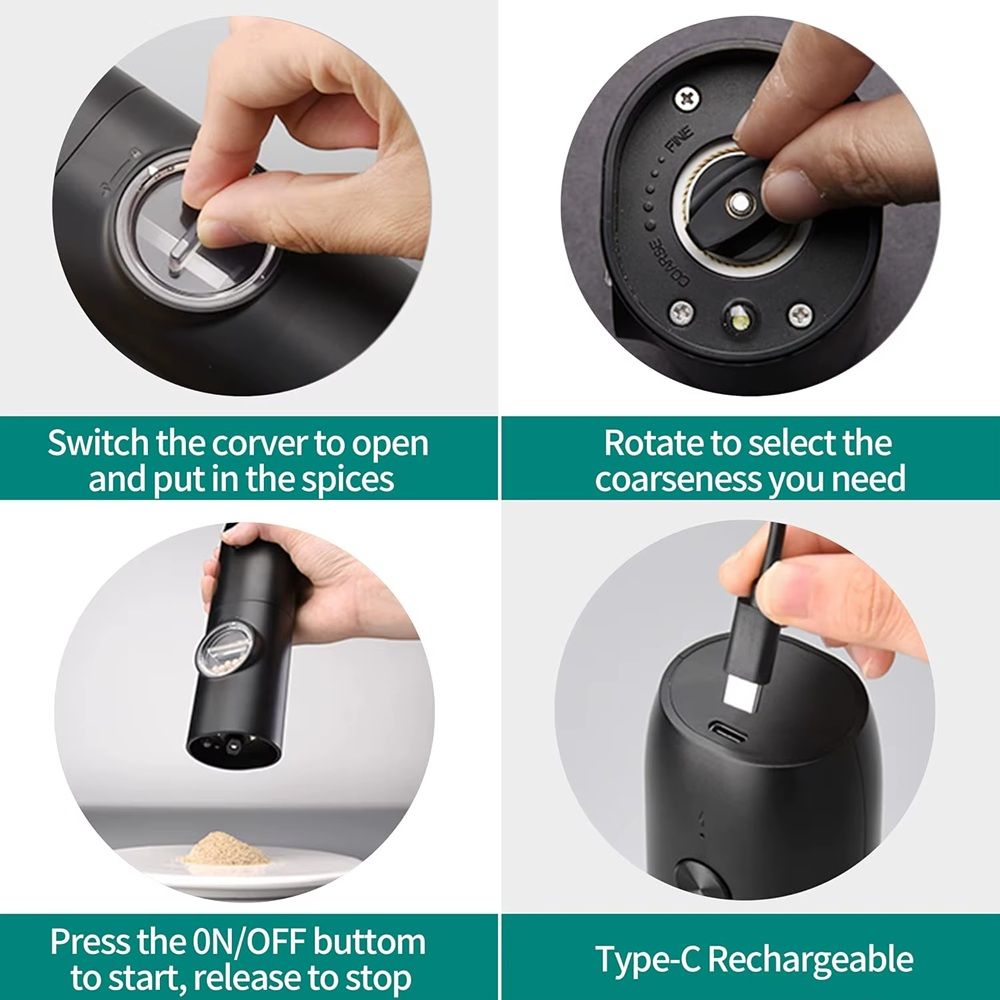 Млинок для перцю і спецій KYMQ-15A електричний, з налаштовуваним помелом, портативний, на акумуляторі, 70ml, 55x50x180mm, Type-C, black