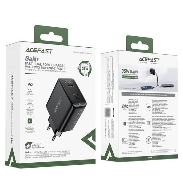 Однією з його головних переваг є висока продуктивність заряджання. Він має 2 порти USB-C загальною потужністю 35 W. В результаті пристрої, підключені до A49, заряджатимуться набагато швидше, ніж зі стандартними зарядними пристроями. Крім того, цей зарядний пристрій підтримує різні протоколи швидкого заряджання, у тому числі PD/PPS/QC/AFC/FCP, а значить він сумісний з більшістю мобільних пристроїв популярних виробників.