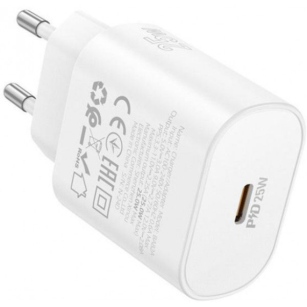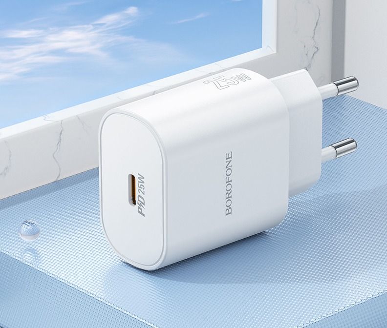 Мережевий зарядний пристрій Borofone BA82A, 1USB-C PD/QC 25W, колір білий