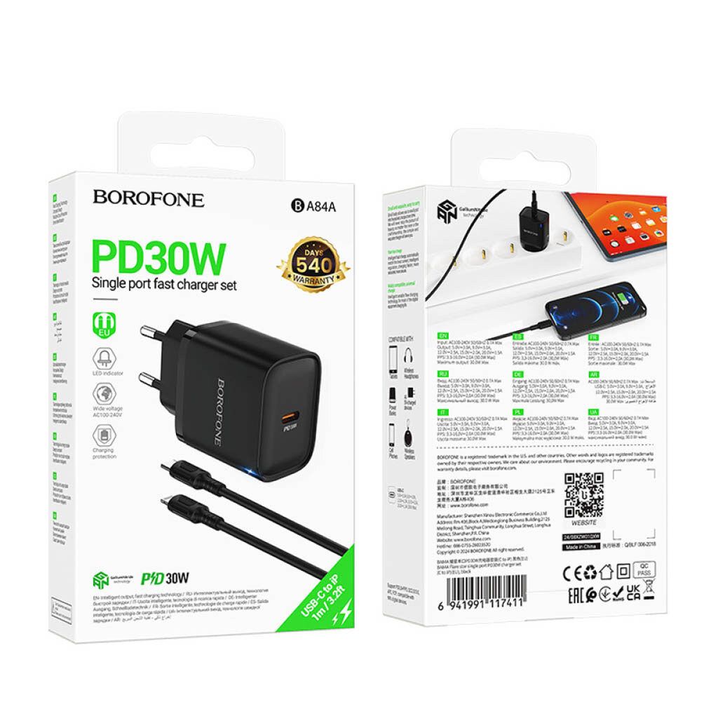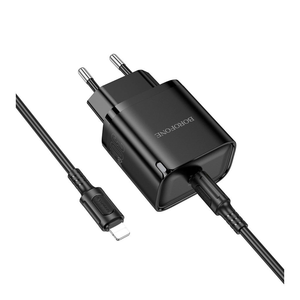 Мережевий зарядний пристрій Borofone BA84A 1USB-C PD/QC 30W+Type-C to Lightning Чорний