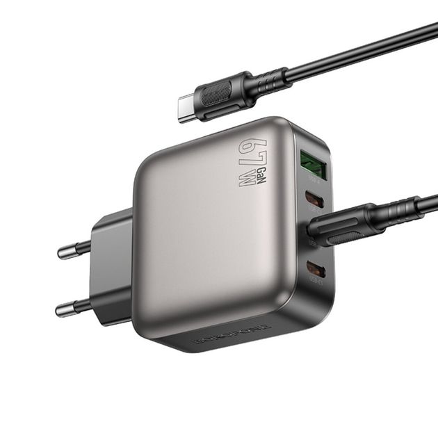 Мережевий зарядний пристрій Borofone BAS57A 3USB-C/1USB PD/QC 67W GAN+Type-C to Type-C Чорний