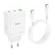 Зарядний пристрій Hoco N33 35W, 3А, USB/2 Type-C, PD, QC | білий + кабель Type-C to Type-C для швидкої зарядки