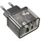 Зарядний пристрій Hoco N34 Dazzling – це високоякісне та стильне рішення для швидкої та безпечної зарядки ваших пристроїв. Оснащений двома портами – USB (18 Вт) та Type-C (20 Вт), він забезпечує відмінну гнучкість та продуктивність. Унікальний дизайн у стилі кіберпанк із прозорим, тонованим корпусом дозволяє спостерігати за внутрішньою роботою пристрою, а багаторівнева система захисту гарантує безпеку та надійність при використанні.