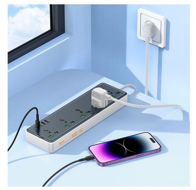 Оснащений трьома портами USB Type-A та одним портом USB Type-C, мережевий фільтр Hoco AC13A пропонує зручність та гнучкість у зарядці мобільних пристроїв, включаючи смартфони, планшети та інші гаджети. Можливість одночасного підключення кількох пристроїв робить його ідеальним аксесуаром для сучасних користувачів, які цінують ефективність та організованість свого робочого та життєвого простору.