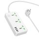 Hoco AC7A мережевий зарядний пристрій подовжувач 3 USB/Type-C, 3 розетки, 1.5 м, білий