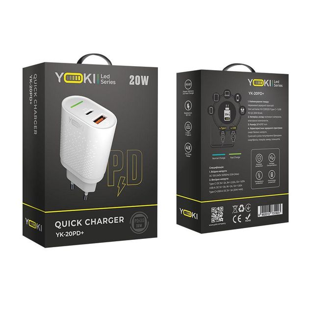 Зарядний Мережевий Пристрій Yoki Led Series YK-20PD+QC 20W Білий