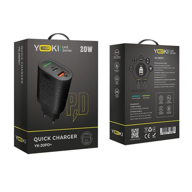 Зарядний Мережевий Пристрій Yoki Led Series YK-20PD+QC 20W Чорний