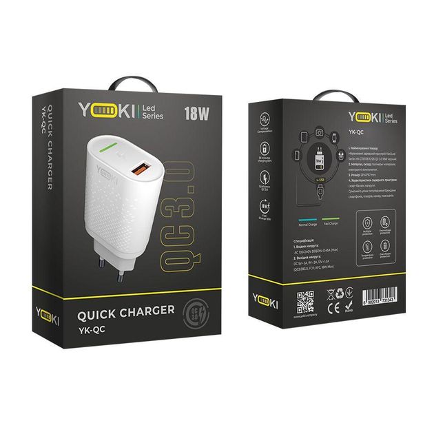 Зарядний Мережевий Пристрій Yoki Led Series YK-QC 3.0 18W Білий