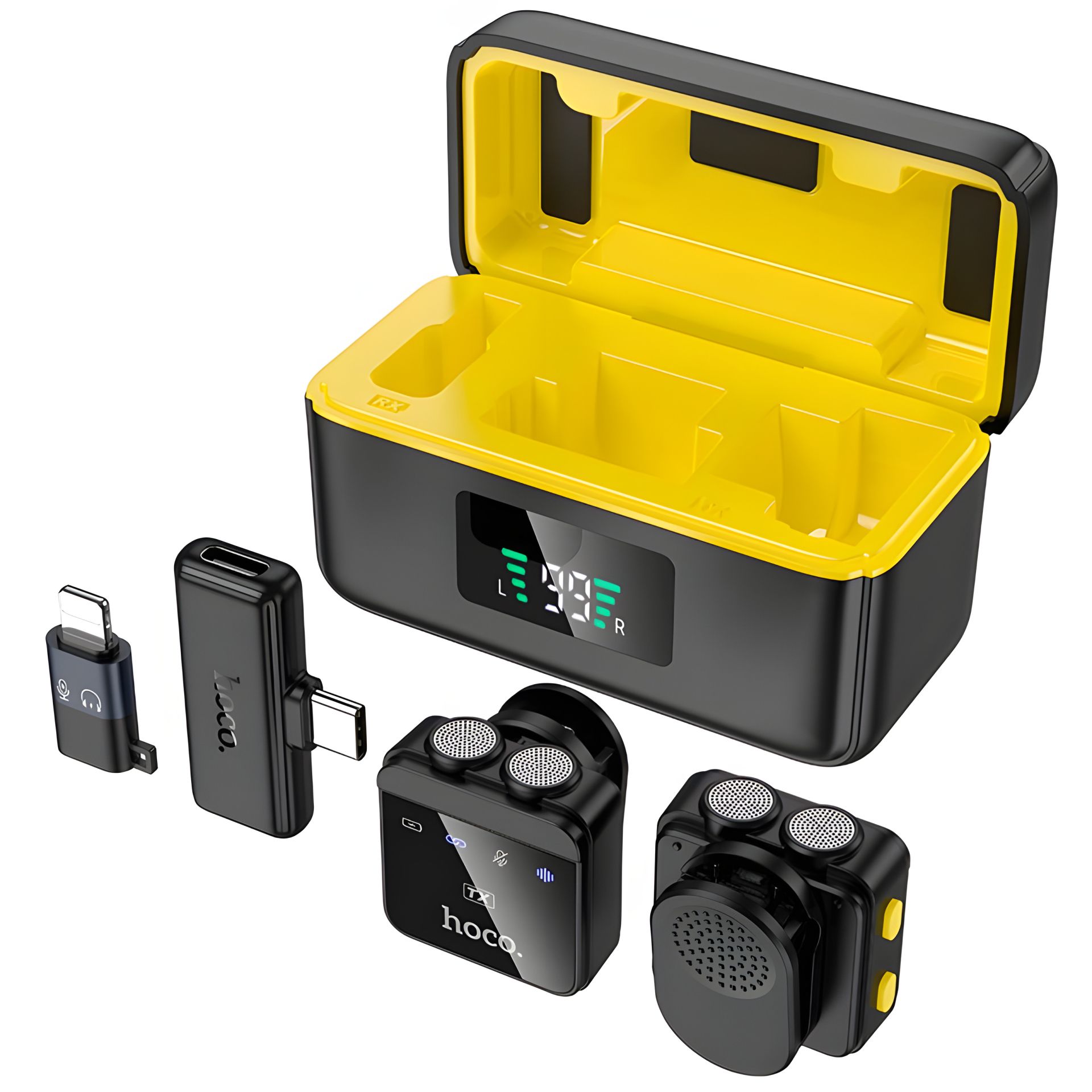HOCO L17 – це універсальний бездротовий мікрофон, оснащений всеспрямованим капсюлем, що забезпечує чистий звук без сторонніх шумів. Він ідеально підходить для блогерів, стримерів, журналістів та всіх тих, хто займається відеозйомкою та інтерв'ю. Пристрій підтримує роботу з роз'ємами Type-C та Lightning, що робить його сумісним із широким спектром мобільних пристроїв.