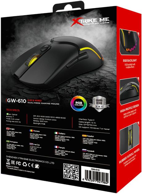 XTRIKE ME GW-610 – це сучасна ігрова миша з подвійним режимом підключення, високою точністю сенсора та стильним RGB-підсвічуванням. Ергономічний дизайн, легка вага та плавне ковзання роблять її ідеальним вибором як для кіберспортсменів, так і для любителів ігор.