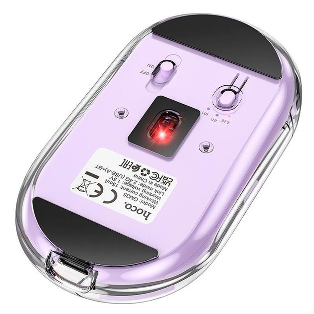 Мишка HOCO General dual-mode silent wireless mouse GM35 (battery version), 2.4G, BT, 800-1200-1600DPI, 300mAh, фіолетова