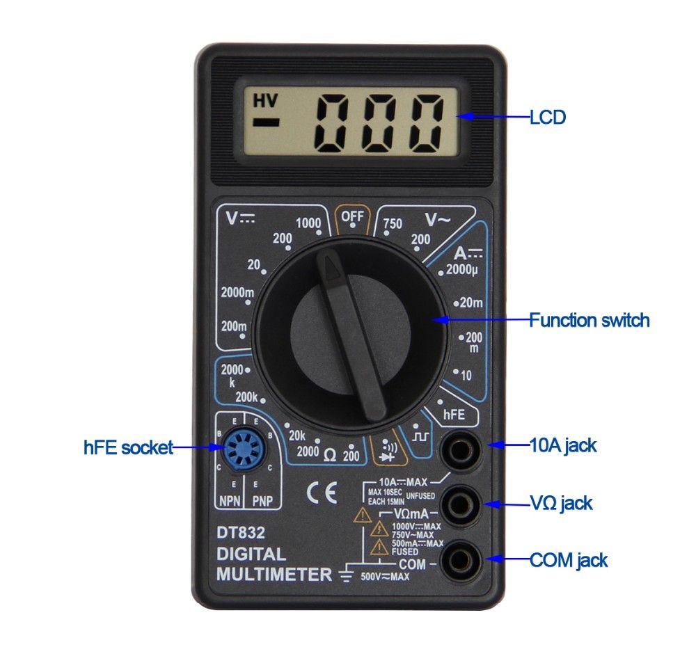 Цифровий універсальний мультиметр DT 830D – надійний ручний прилад для проведення вимірювань постійного струму, постійного і змінного напруги та опору. Мультиметр дозволяє тестувати діоди і транзистори. Мультиметр стане чудовим вибором для професіоналів і домашніх майстрів.