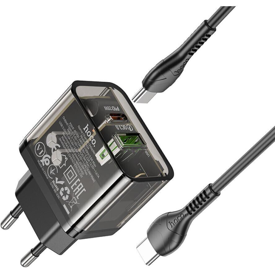Мережевий зарядний пристрій Hoco N34 Dazzling PD20W+QC3.0 Type-C to Type-C Прозорий чорний
