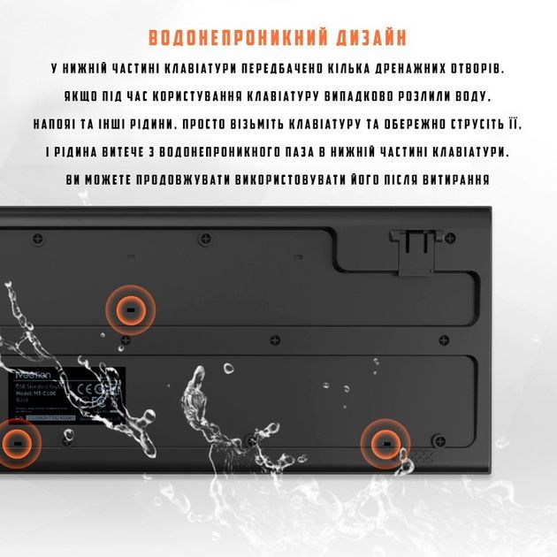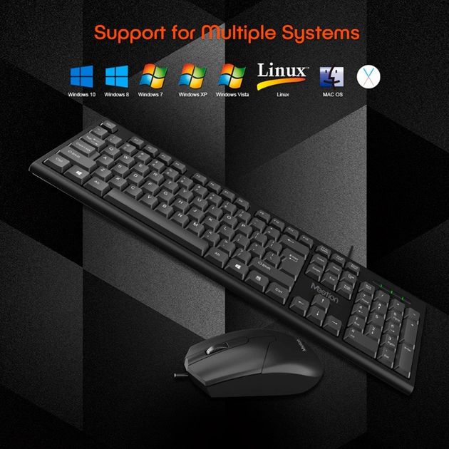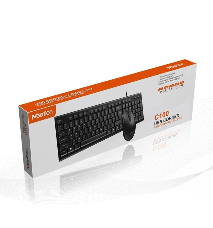 Meetion MT-C100 – це зручний та надійний комплект з дротової клавіатури та дротової миші, що ідеально підходить для офісної роботи, навчання та повсякденного використання. Завдяки ергономічному дизайну, водонепроникній конструкції та якісним матеріалам цей комплект стане чудовим вибором для комфортної роботи за комп'ютером.