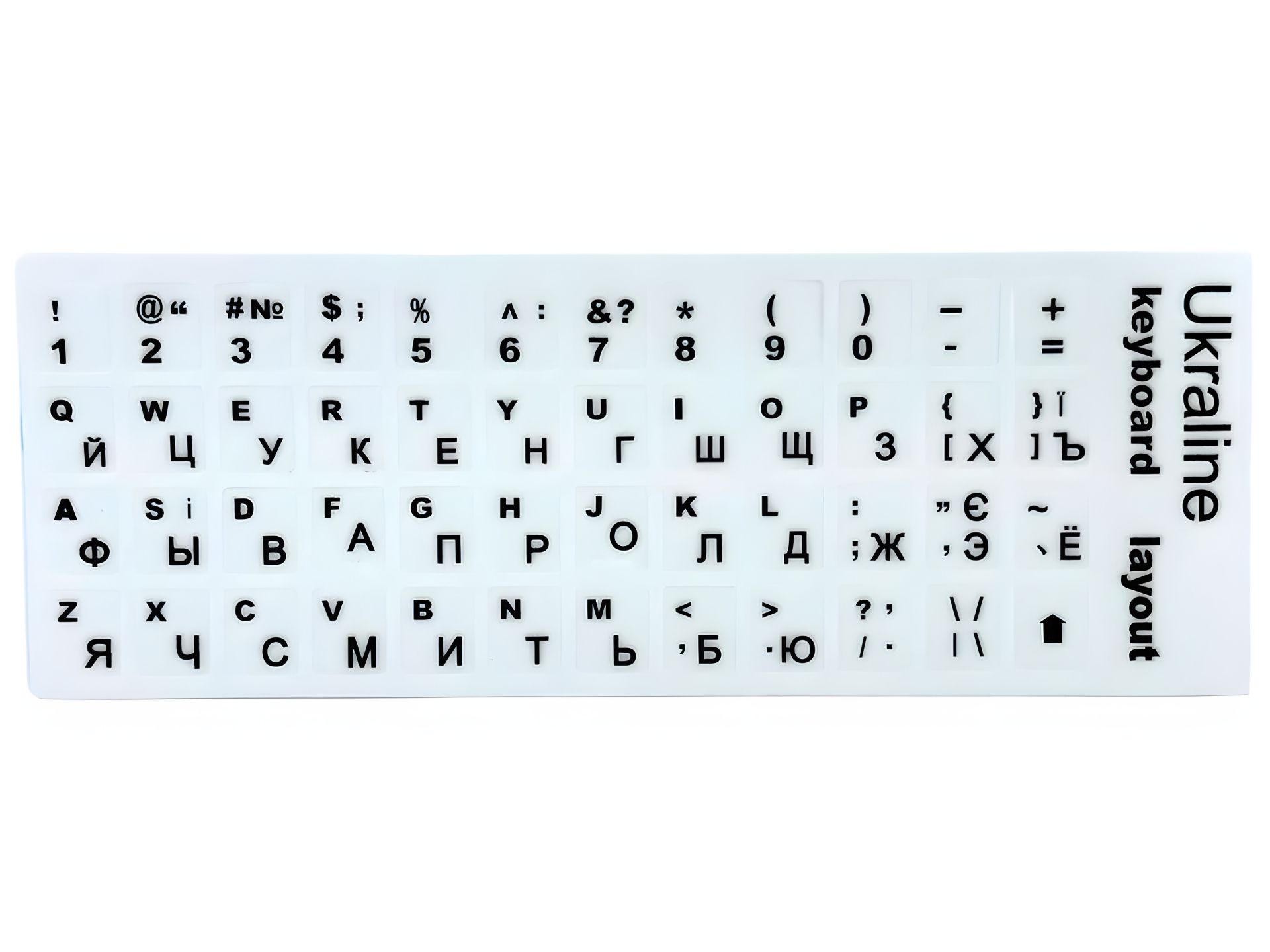 Наклейки Ukraine – це практичне рішення для тих, хто хоче відновити стерті символи на клавішах або додати розкладку на клавіатуру. Виготовлені із міцного зносостійкого матеріалу, вони забезпечують надійну фіксацію, довговічність та читання символів навіть при інтенсивному використанні.