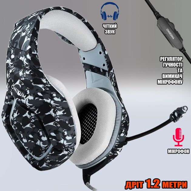 ONIKUMA K1-B Gaming, 3.5mm, 2.2m, Camouflage-Grey Дротові ігрові навушники