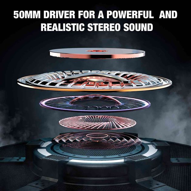 - 50-мм динаміки забезпечують потужне та чітке звучання з глибокими басами, створюючи ефект присутності у грі.