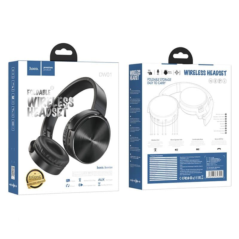 Навушники Bluetooth HOCO DW01 Foldable headphones | BT5.0, TF, AUX, 4Hours | black