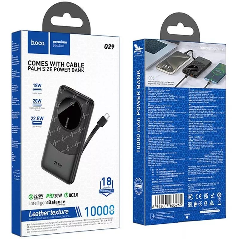 Повербанк Hoco Q29 Nobility 22.5W+PD20W з cable(Type-C) 10000mAh Чорний