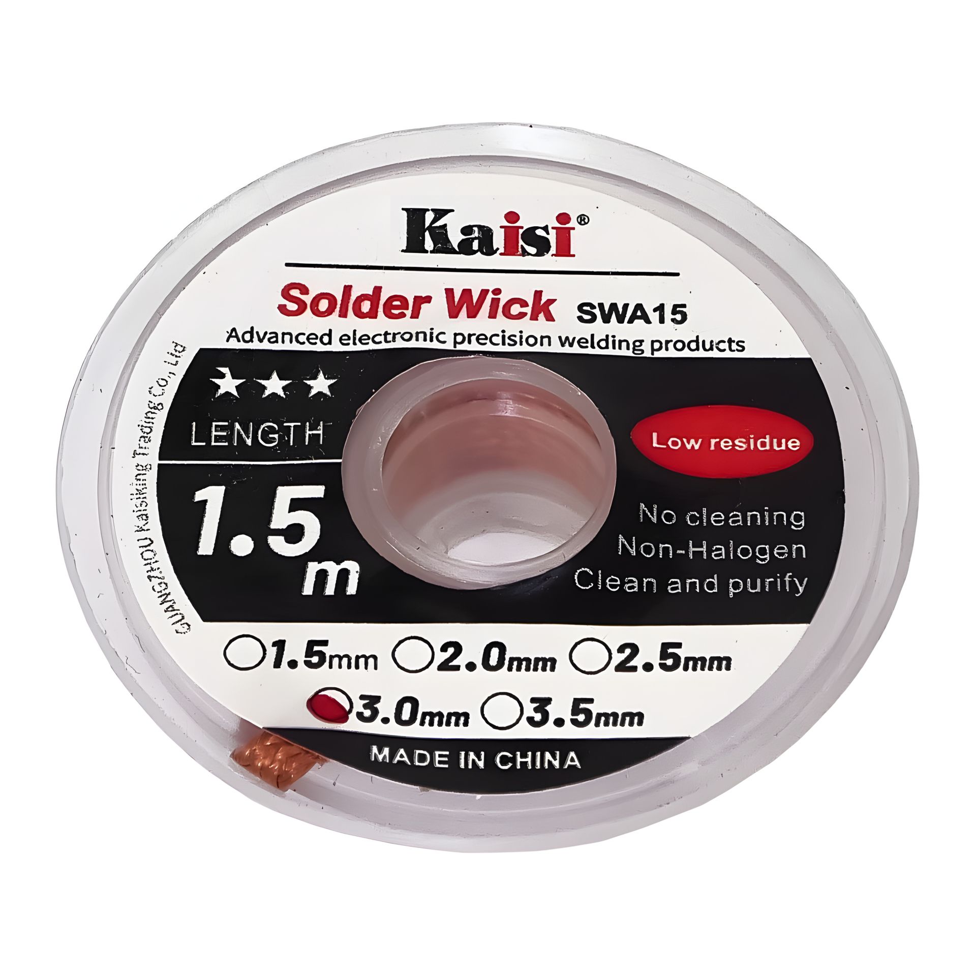 Очищувач припою Kaisi 3015 – це високоефективний інструмент для видалення надлишків припою з друкованих плат, мікросхем та інших електронних компонентів. Завдяки збільшеній ширині 3 мм та довжині 1.5 метра, цей очищувач ідеально підходить для роботи з великими контактними майданчиками та компонентами, де потрібний швидкий та безпечний демонтаж припою.