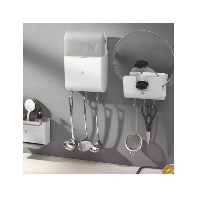 Тримач-підставка Huo Hou забезпечить зручне зберігання кухонного приладдя. Виготовлений він із міцного пластику білого кольору. Розміри 21.5x13.8x13.7 см дозволяють організовано розмістити посуд. Цей стильний та функціональний аксесуар стане чудовим доповненням до інтер'єру кухні.